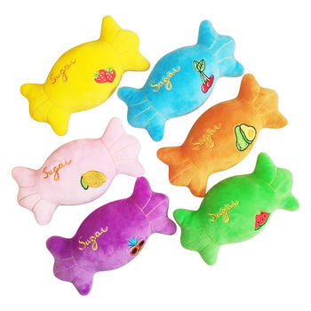 Eco-friendly Super morbido cucciolo di cane cartone animato caramella peluche morso resistente squittio giocattolo per cuccioli